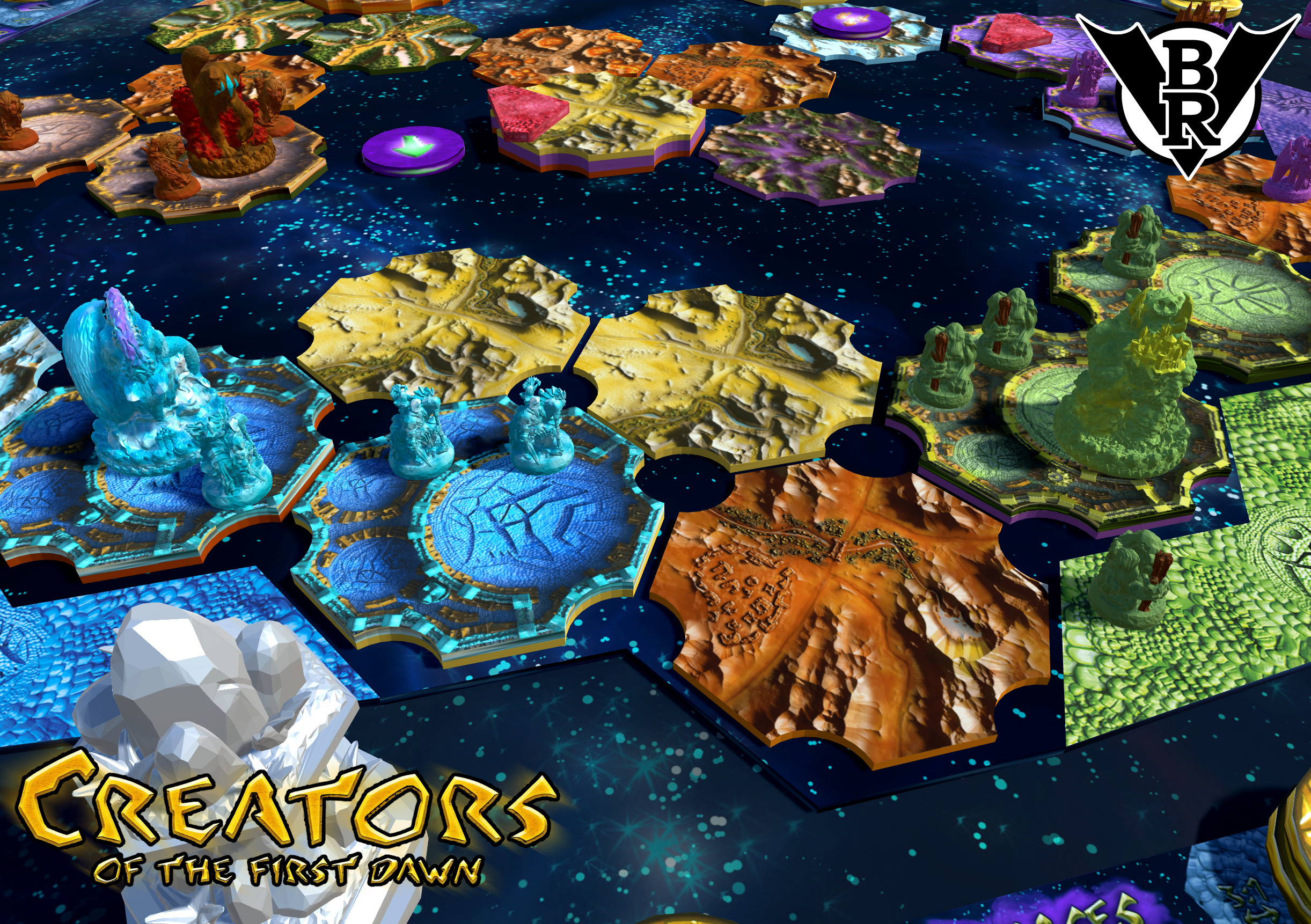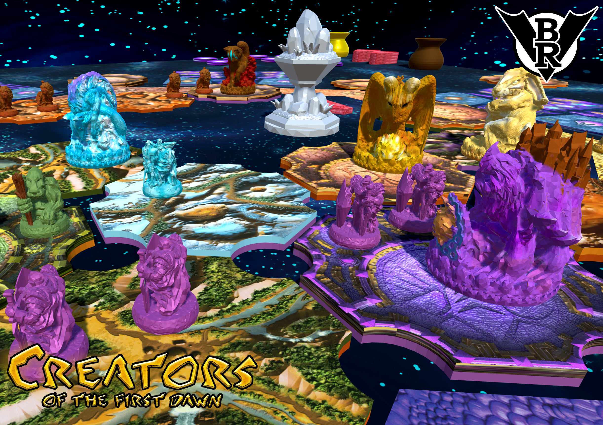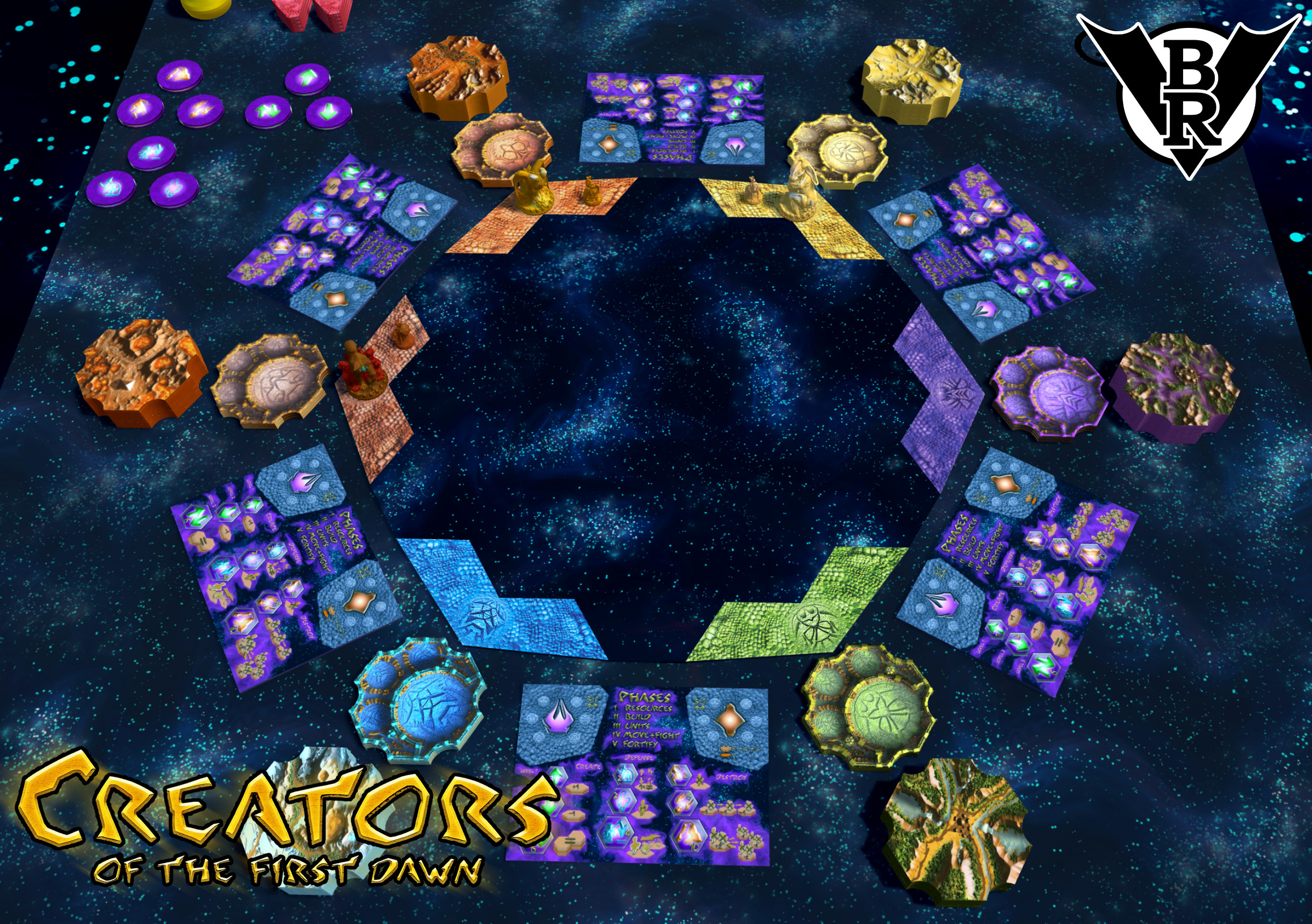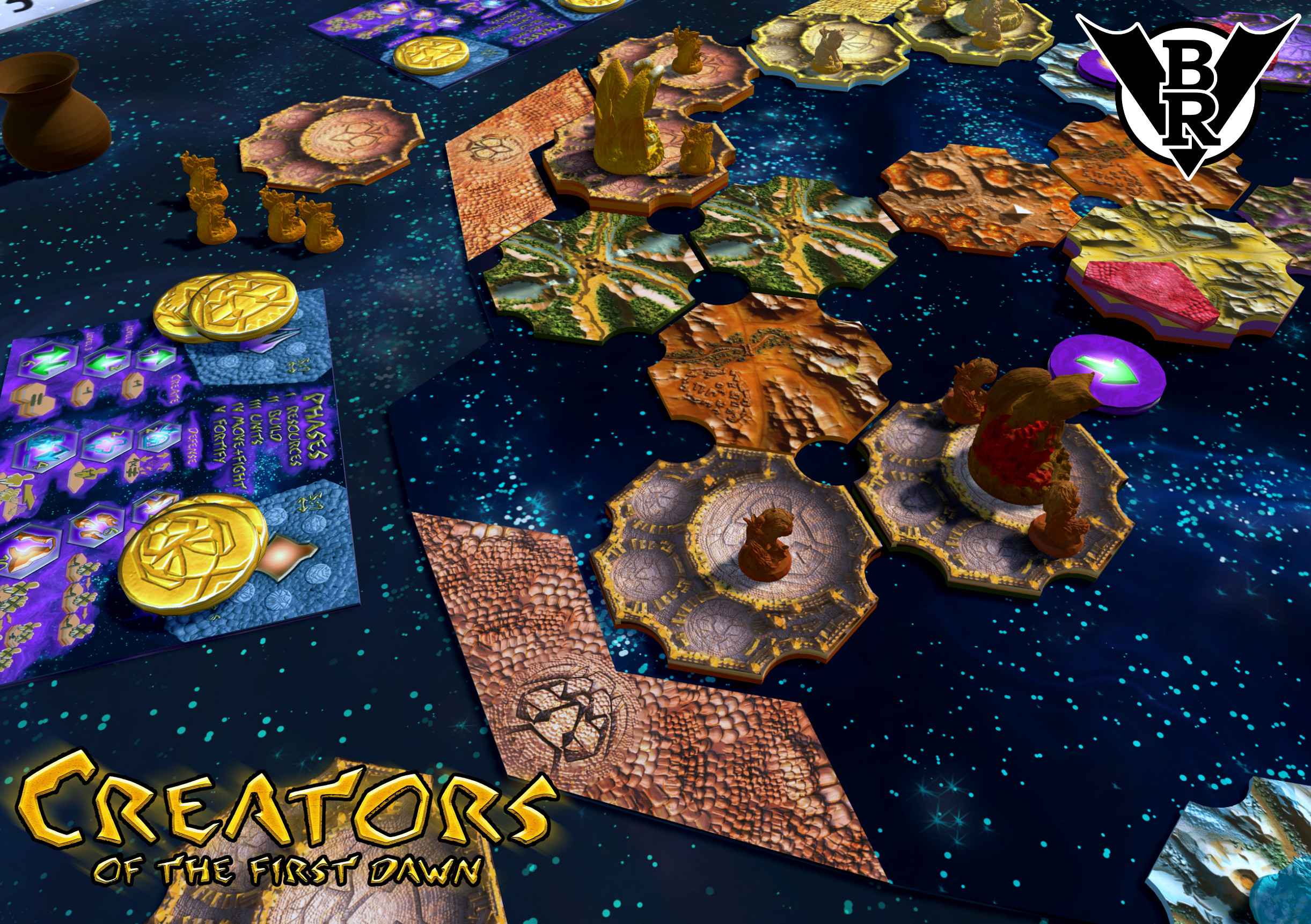 Mehrere Spielvarianten und zusätzliche Mods sorgen dafür, dass jede Runde ein Abenteuer und ein einzigartiges Erlebnis wird. Fühle dich wie ein Gott und spiele „Creators of the first Dawn“ exklusiv für den Virtuellen Brettspielraum (VBR)