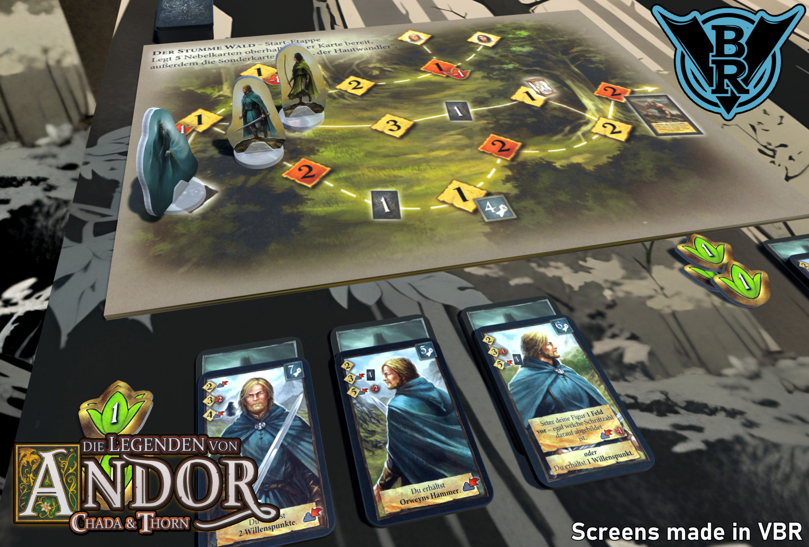 With the cooperative adventure „Chada & Thorn“, the world of the „Legends of Andor“ is expanded to include a two-player deck and turn optimization game and the story of some of the characters from the battles for the free world is continued.