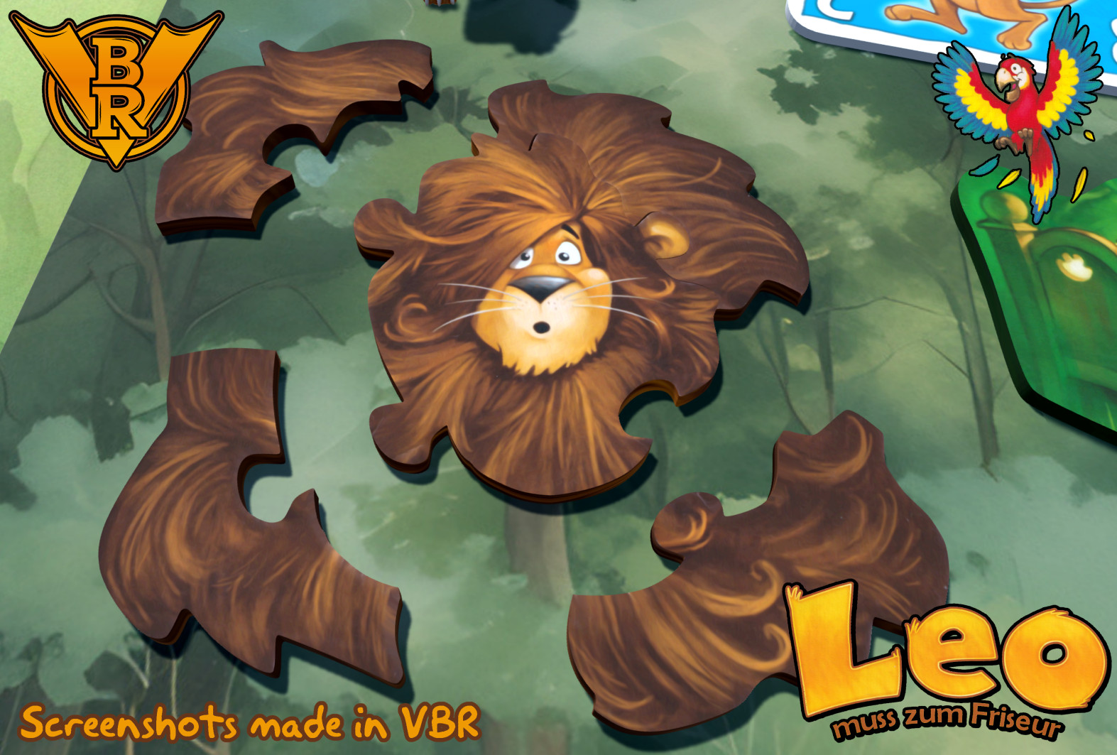 So kann man sich Leos Tag vorstellen. Und es wird nicht die einzige Begegnung bleiben. Er hat viele Freunde und immer wenn er einen trifft, bleibt er kurz stehen, plaudert ein wenig und verliert kostbare Zeit. Zebra, Papagei und Nashorn, warten nur darauf Leo die neuesten Nachrichten zu erzählen. Hier kommen die Spieler dieses lustigen und spannenden Familienspiels zu ihrem Einsatz. Helft Leo dabei seinen Weg durch den Dschungel zu finden und nicht zu viel Zeit zu verlieren. Denn er hat ja eine Aufgabe. Seine Mähne soll geschnitten werden.