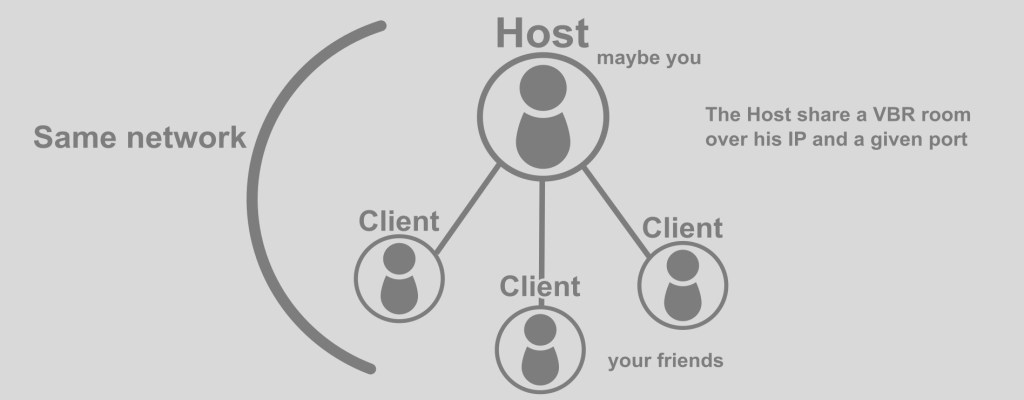 Up to six players can enter a virtual room and pursue their hobby together. VBR relies on a self-responsible server hosting system, where one of the players hosts the game master server with his PC and all the others connect to him via the network.
